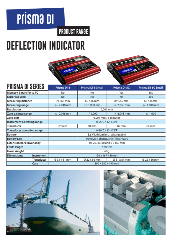 Most engineers are familiar with the importance of regular checks on diesel engine crankshafts and cylinder liner. The old dial gauge for crankshaft alignment checks was time-consuming, unpleasant, dirty and gave uncertain accuracy. By using Prisma Tibro’s electronic Deflection Indicator DI-5 series, the task will be much more comfortable, and the accuracy will be improved. As an option to the instrument, you can connect the ovality kit to check the cylinder liner ovality and wear comparison. The Deflection Indicator DI-5 series has been used by large numbers of engineers in over 90 countries worldwide.